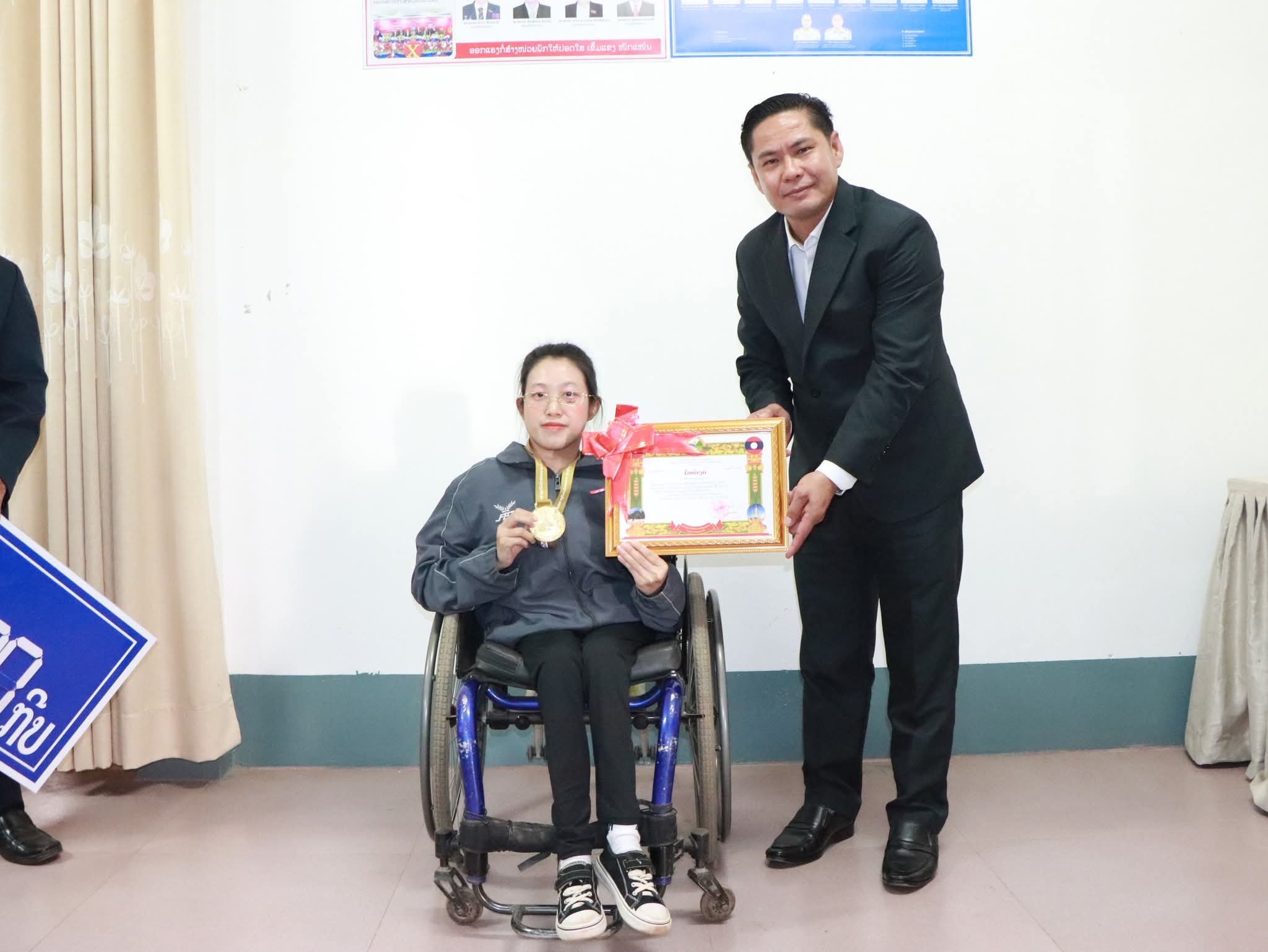 ແຂວງຫຼວງພະບາງ ຈັດພິທີມອບ ເງິນບຳເນັດ ແລະ ມອບໃບຍ້ອງຍໍ ໃຫ້ແກ່ຄະນະຄູຝຶກ ແລະ ນັກກິລາທີ່ເຂົ້າຮ່ວມການແຂ່ງຂັນໃນງານມະຫະກຳກິລາຄົນພິການແຫ່ງຊາດ ຄັ້ງທີ IV ໃນວັນທີ 30 ທັນວາ 2025 ນີ້, ທີ່ພະແນກສຶກສາທິການ ແລະ ກິລາແຂວງ ພາຍຫຼັງທີ່ທັບນັກກິລາຂອງແຂວງໄດ້ສຳເລັດການເຂົ້້າຮ່ວມແຂ່ງຂັນໃນລະຫວ່າງວັນທີ 14-19 ທັນວາ 2025 ຜ່ານມາ ໂດຍການໃຫ້ກຽດເຂົ້າຮ່ວມ ແລະ ມອບໃບຍ້ອງຍໍຂອງ ທ່ານ ປອ ສຸລິເດດ ແກ້ວບົວລະເພັດ ກຳມະການພັກແຂວງ ຫົວໜ້າພະແນກສຶກສາທິການ ແລະ ກິລາແຂວງ, ມີຄະນະການນຳຂອງພະແນກ, ແຂກຖືກເຊີນ ຕະຫຼອດເຖິງຄະນະຄູຝຶກ ພ້ອມດ້ວຍນັກກິລາ ແລະ ພາກສ່ວນກ່ຽວຂ້ອງຂອງແຂວງເຂົ້າຮ່ວມຢ່າງພ້ອມພຽງ.